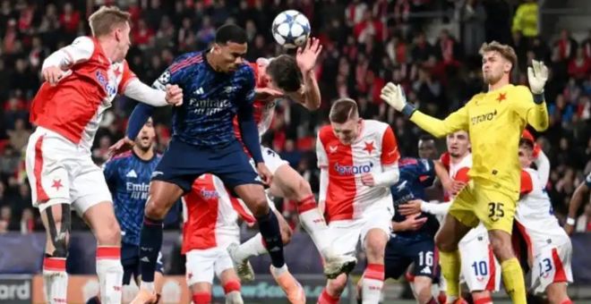 开场仅仅2分钟,加布里埃尔禁区前的抽射就很好的证明了这一点。这也是他们充分利用定位球、角球等机会的延续。在此之后,萨卡在禁区前的数次突破让布拉格斯拉维亚非常紧张的,后卫们几乎一对一的贴防,不仅仅消耗了很多的体力,也让他们神态一直处于紧绷的状态。的确是很容易出错的,比如第30分钟的丢球。