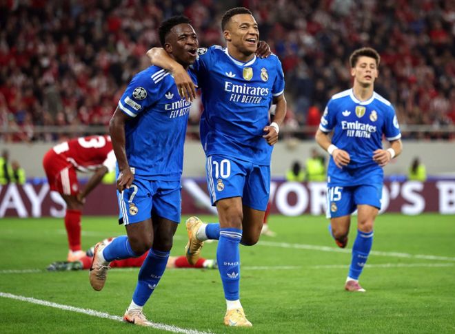 皇马则征服了客场,以4-3险胜奥林匹亚科斯。这场比赛成为姆巴佩表演的舞台,他包揽了皇马的4粒进球。姆巴佩是皇马队史第4位在欧冠上演大四喜的球员。这也是他的皇马生涯首次上演大四喜。姆巴佩本赛季欧冠进球达到了9球,这让他登上了射手榜头名的位置,甩开哈兰德和哈里-凯恩4球。