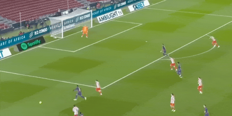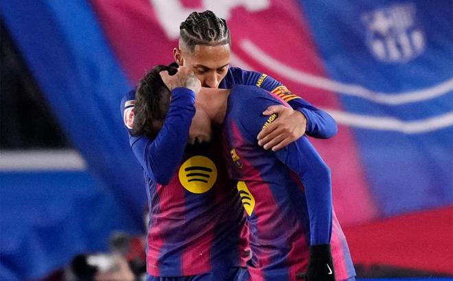 西甲联赛迎来一场强强对话,领头羊巴塞罗那主场迎战马德里竞技。全场比赛,双方强度拉满,巴埃纳先声夺人,一度帮助马竞客场拿到优势。而巴萨快速做出回应,拉菲尼亚扳平、奥尔莫反超,补时阶段费兰托雷斯锁定胜局,最终巴塞罗那3:1逆转战胜马竞,暂时将榜首的优势拉开到4分,同时也终结了马竞联赛13轮不败。客场作战的马竞,开场便反客为主,频频向巴塞罗那的腹地发起进攻。而巴塞罗那利用亚马尔这一点,数次发动精彩的反击,第13分钟,中场悍将卡多索无法坚持比赛,被科克换下。第19分钟,马竞反越位成功,巴埃纳单刀破门,0:1!落后的巴萨向对手的禁区,发起潮水般的攻势。仅仅几分钟后,中场的佩德里送出手术刀直塞,拉菲尼亚禁区晃过奥布拉克,推射空门得手,1:1!比分回到同一起跑线后,两队的比拼更加激烈。第36分钟,奥尔莫制造点球,但是莱万的点射直接高出球门!巴萨错失反超的绝好良机。随后,莱万近距离的头球,被奥布拉克神奇扑出。半场比赛结束,两队暂时战平。整个上半场,双方的节奏并不是太快,但是对抗非常激烈。在开场阶段,马竞的攻势更主动,但是经过了十分钟左右的试探,巴萨逐渐控制住了局面,并且频频挑战马竞的防线。对于巴塞罗那来说,可惜的是莱万的点球没有把握住,导致球队没有完成反超。除此之外,左边路的巴尔德,当进攻到前场之后,在关键时刻处理球的决断有些不够理智。中场休息时,除了战术方面的安排之外,弗里克大概率也要对人员进行调整,染黄的马丁很有可能会是其中之一。下半场回来,巴塞罗那继续保持进攻端的主动权,第53分钟,亚马尔凭借着一己之力打穿整个边路防守,但是禁区内的拉菲尼亚面对大半个空门,一脚扫射竟然偏出。西蒙尼连续做出换人调整,瑟洛特披挂登场。第65分钟,佩德里直塞,莱万吸引多人牵制,奥尔莫禁区推射远角破门,2:1!久攻之下的巴萨,终于反超比分。拉菲尼亚、佩德里、莱万全部被换下,弗里克明显要加强防守了。第78分钟,阿尔马达禁区晃过多名防守球员,包括霍安加西亚,几乎面对空门的情况下,直接打飞了!最后时刻,马竞展开了全面的攻势,但是最后读秒阶段,巴萨发动快速反击,巴尔德横传禁区,费兰托雷斯门前推射破门,3:1,巴塞罗那锁定胜局。对于马竞来说,输掉这场比赛的确非常可惜,球队最后二十分钟打出了潮水般的攻势,而且也制造出了多次破门良机,只可惜临门一脚欠缺一些运气。而对巴塞罗那来说,球队能够拿下这场强强对话,着实不易!奥尔莫和佩德里都因伤病下场,幸运的是并不算严重,75分钟之后,没有了佩德里的拿球组织,球队处于完全的被动防守,靠着意志硬拼马竞的攻势。最终球队众志成城顶住了压力,无论传中还是渗透,全部一一化解,保住了球队的胜果。