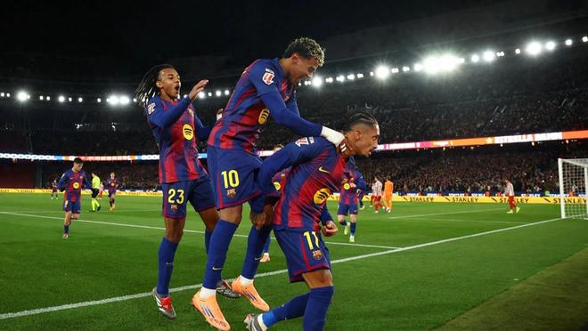 巴萨力克马竞,稳居积分榜榜首巴塞罗那 3–1 马德里竞技(比赛时间:12月3日凌晨,诺坎普球场)进球球员:巴萨:拉菲尼亚(26')、丹尼·奥尔莫(65')、费兰·托雷斯(90'+6)马竞:亚历克斯·巴埃纳(19')在12月3日凌晨结束的西甲第19轮焦点战中(因西班牙超级杯提前进行),巴塞罗那坐镇诺坎普球场以3比1击败马德里竞技,继续稳居联赛榜首。此役过后,巴萨在多赛一场的情况下领先少赛一轮的皇家马德里4分,同时终结了马竞各项赛事连续7场不败的强势势头。比赛从一开始就节奏紧凑、攻防转换迅速。开场阶段,双方均创造出有威胁的机会:拉菲尼亚率先尝试远射,但皮球高出横梁;而客队马竞则凭借边路新星亚历克斯·巴埃纳的活跃表现频频冲击巴萨防线。第19分钟,巴埃纳从中场带球推进后冷静施射,为马竞首开纪录。然而,马竞的领先优势仅维持了7分钟。第26分钟,拉菲尼亚抓住对方五后卫体系中稍纵即逝的空当,低射破门,将比分扳为1比1。上半场剩余时间,巴萨持续施压。奥尔莫在禁区内被巴里奥斯放倒,裁判判罚点球,但莱万多夫斯基主罚却将球踢上看台。随后,马竞门将奥布拉克又神勇扑出莱万近在咫尺的头球攻门,力保球门不失。双方以1比1进入中场休息。易边再战,巴萨全面掌控局面,尽管马竞仍偶有犀利反击。第65分钟,奥尔莫接佩德里助攻推射破门,助巴萨2比1反超比分。遗憾的是,他在庆祝进球时左肩受伤,随即被换下场。此后马竞一度获得绝佳扳平良机——阿尔马达单刀突入禁区晃过门将,却未能将球送入空门。错失机会的马竞很快遭到惩罚:补时第6分钟,替补登场的费兰·托雷斯冷静破门,将比分锁定为3比1。整场比赛,巴萨展现了更强的整体实力与韧性,最终在主场全取三分,进一步巩固了榜首位置。