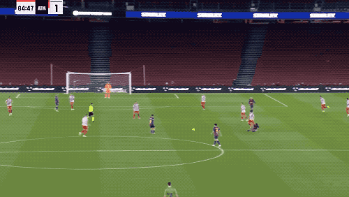 第65分钟,巴萨在前场持续施压,皮球错进错出,莱万送出助攻,奥尔莫进球后倒地受伤。