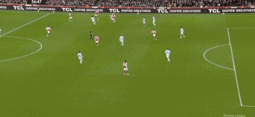 第37分钟,阿森纳前场抢断,梅里诺起到轴心作用,赖斯的传中正好越过两名后卫,马杜埃凯的射门被后卫挡出底线。