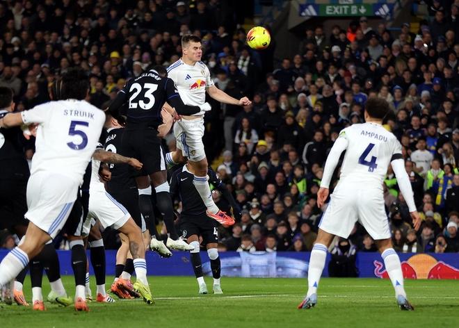 第34分钟,安德雷-桑托斯出球被断,施塔赫远射打偏;第43分钟,博格尔上抢断下恩佐脚下皮球,切尔西弧顶处完全放空无人防守,日本中场田中碧果断起脚轰出世界波洞穿桑切斯的球门,0:2!下半场回来马雷斯卡立马换上了内托和古斯托,这次调整也立马起到作用。第50分钟,吉滕斯左路强行下底传中,恩佐前点带走防守注意力,后门柱的内托捅射追回一球,1:2!第51分钟,若昂-佩德罗回撤组织直塞,德拉普右侧杀出小角度低射击中了边网;第54分钟,桑切斯后场出球被断,利兹联就地反击,卢卡斯-恩梅加前插点球点抽射破门,但越位在先进球无效。