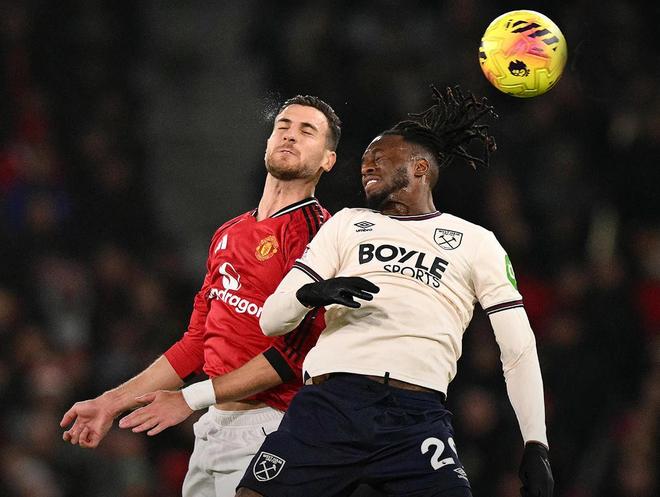 曼联排出3421阵型,拉门斯镇守球门,卢克肖、海文和马兹拉维构筑后防,达洛特、B费、卡塞米罗和阿玛德坐镇中场,库尼亚和姆伯莫搭档双前腰,单箭头则是齐尔克泽。比赛刚刚开打第3分钟,曼联球员阿玛德就利用个人能力,强行从右路杀入西汉姆联禁区,和防守球员对抗后倒地,主裁判没有任何表示。第6分钟,西汉姆联给曼联以强势回应,马特乌斯接到队友倒三角传中在大禁区前沿完成了一脚大力推射,卡塞米罗用滑铲化解险情。第24分钟,曼联球员姆伯莫右路突然起脚兜射远角,西汉姆联门将阿雷奥拉直接单掌将皮球托出横梁。