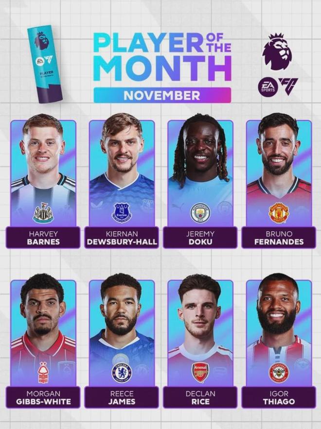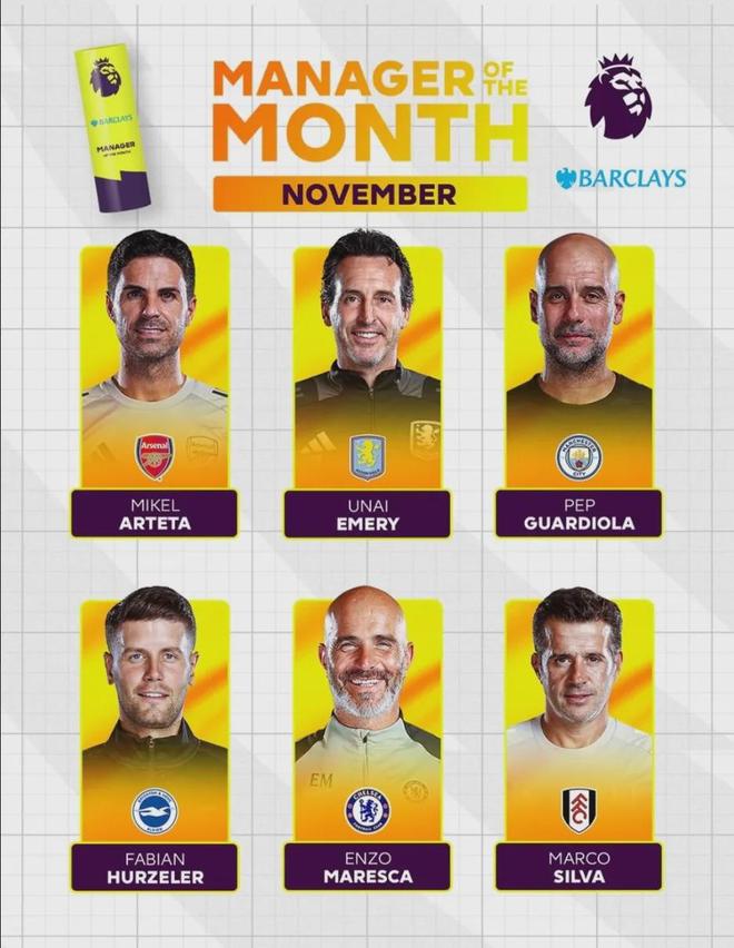 官方:阿尔特塔被提名为了英超11月最佳主帅候选。赖斯被提名为了英超11月最佳球员候选。阿森纳11月份2胜2平,战绩上来说,可能许策勒和马雷斯卡更有优势,所以给他们吧!最佳球员的话,其实很多人都有竞争力,很难选出龙头,这个我支持赖斯!